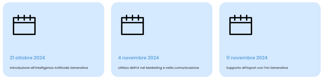 Il ciclo formativo, realizzato nell’ambito del progetto SEI – Sostegno all’Export dell’Italia, è composto da tre incontri, organizzati da NIBI, la business school di Promos Italia mira a offrire alle imprese italiane una prospettiva pratica e applicativa sull’intelligenza artificiale generativa (IAG), con un focus specifico sulle sue potenzialità nel marketing e nell’export.